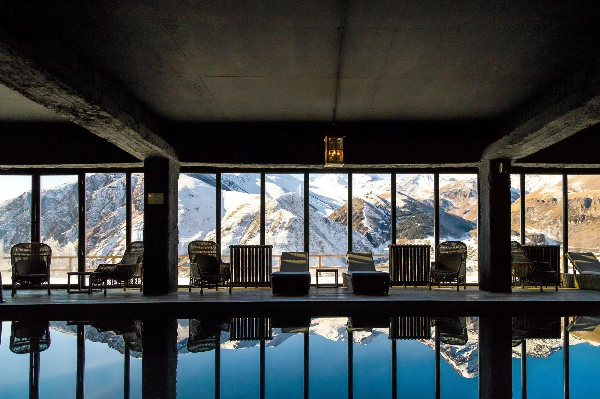 Rooms Hotel Kazbegi is a stylish mountain retreat located in Stepantsminda, Georgia, surrounded by the stunning Caucasus Mountains. Known for its modern design blended with rustic charm, the hotel offers cozy rooms with breathtaking views of Mount Kazbek. Guests can enjoy a warm, inviting atmosphere, panoramic windows, and comfortable amenities, making it an ideal destination for relaxation and nature lovers.